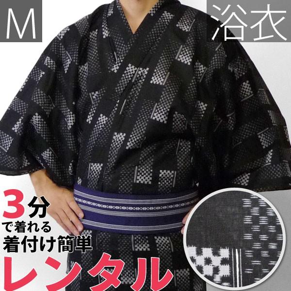 浴衣 メンズ レンタル ゆかたレンタル 3点セット 浴衣 帯 下駄 Nt My118 黒刺子 浴衣レンタル 花嫁衣裳 Com